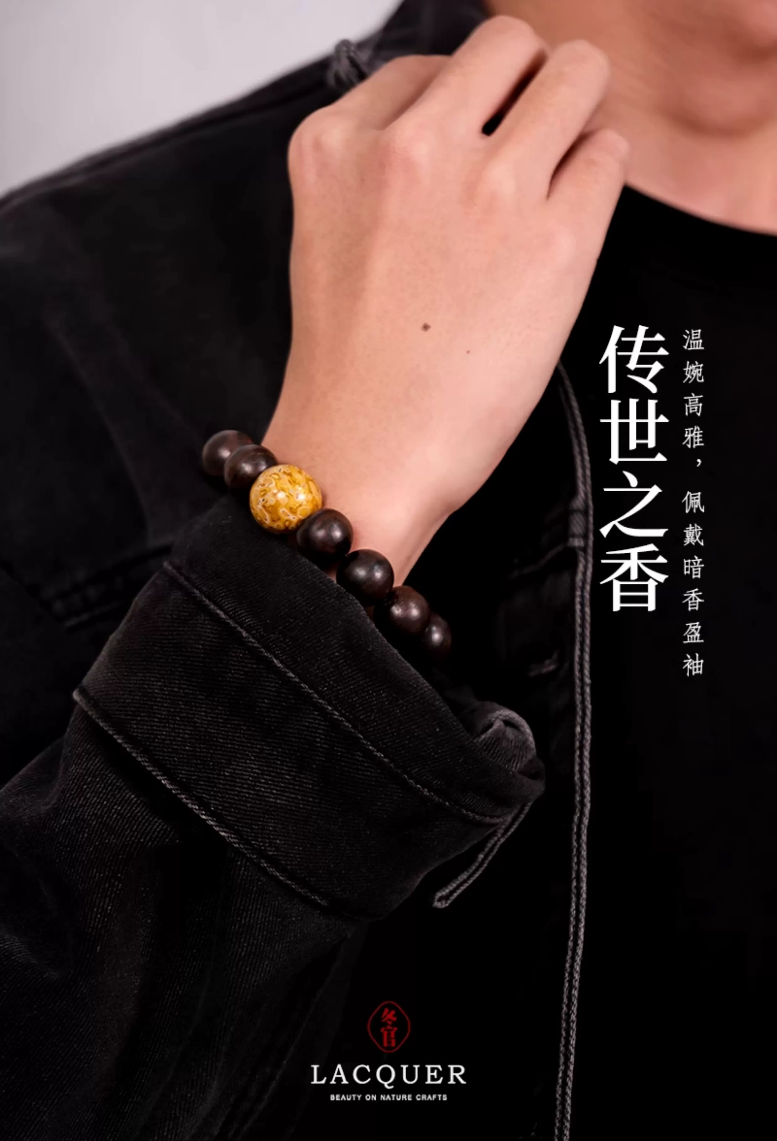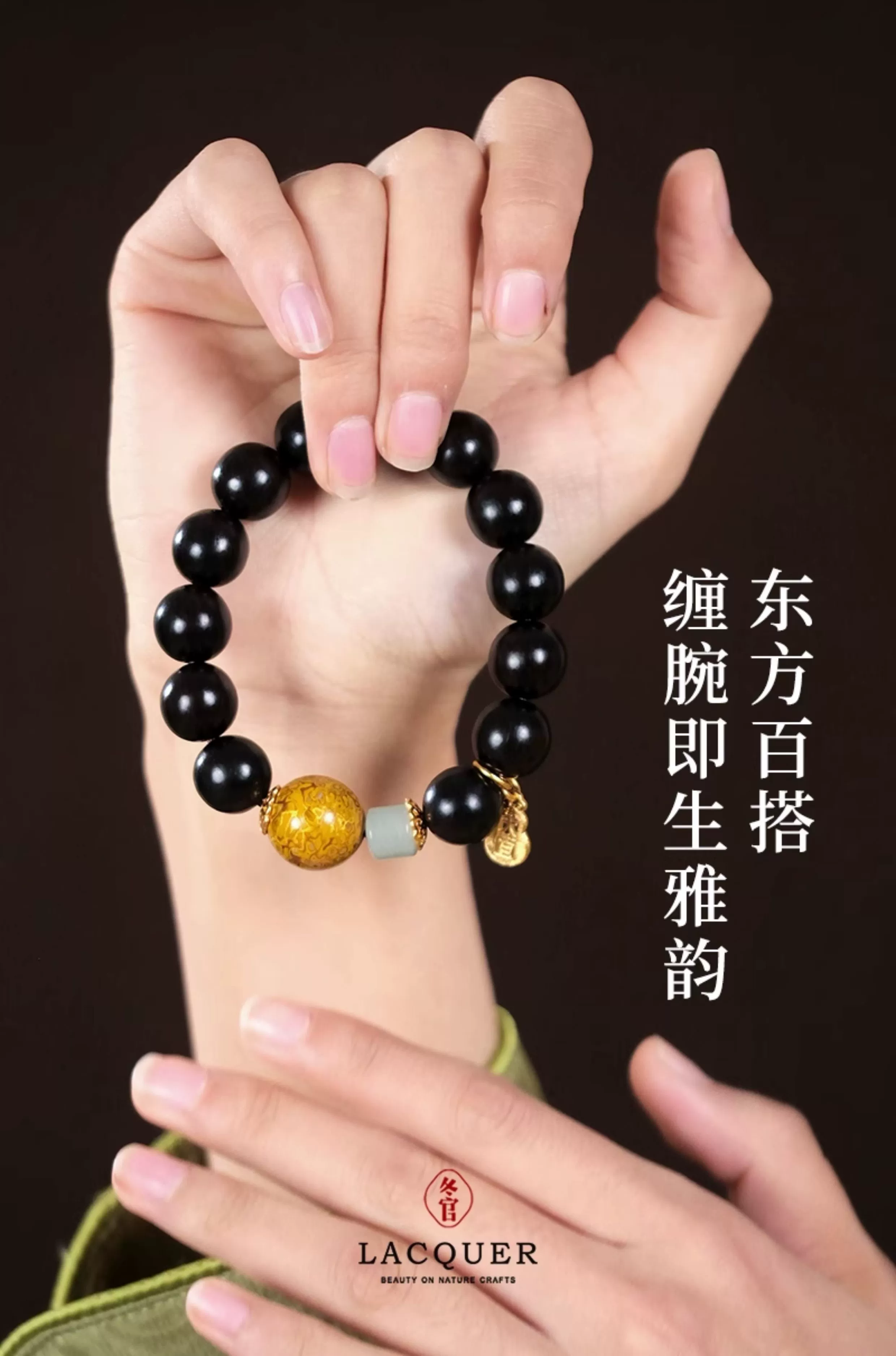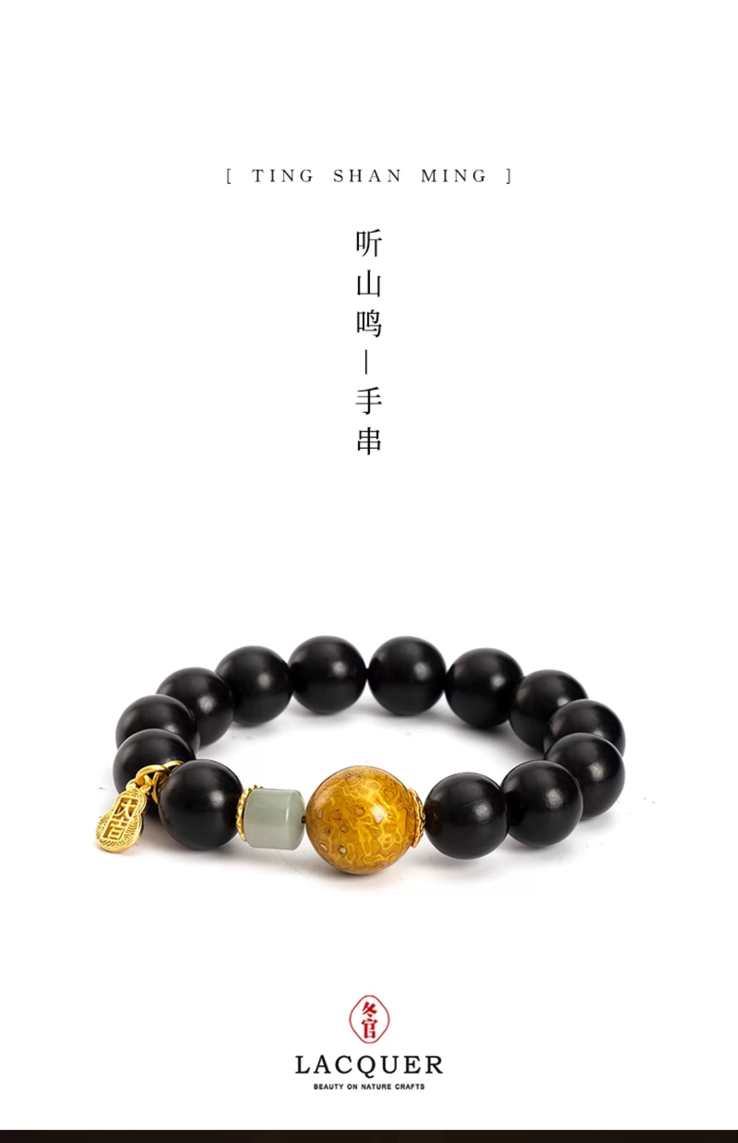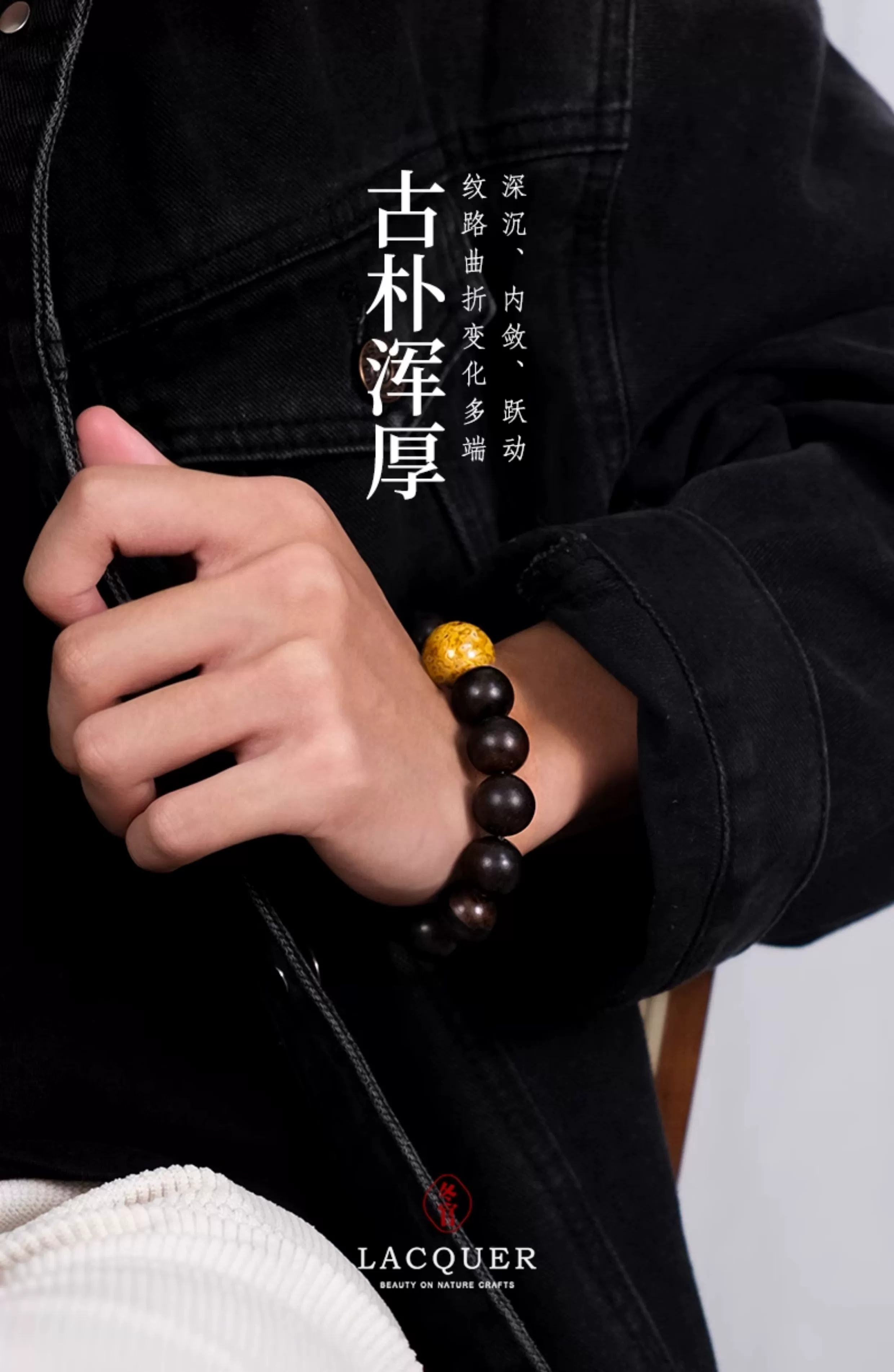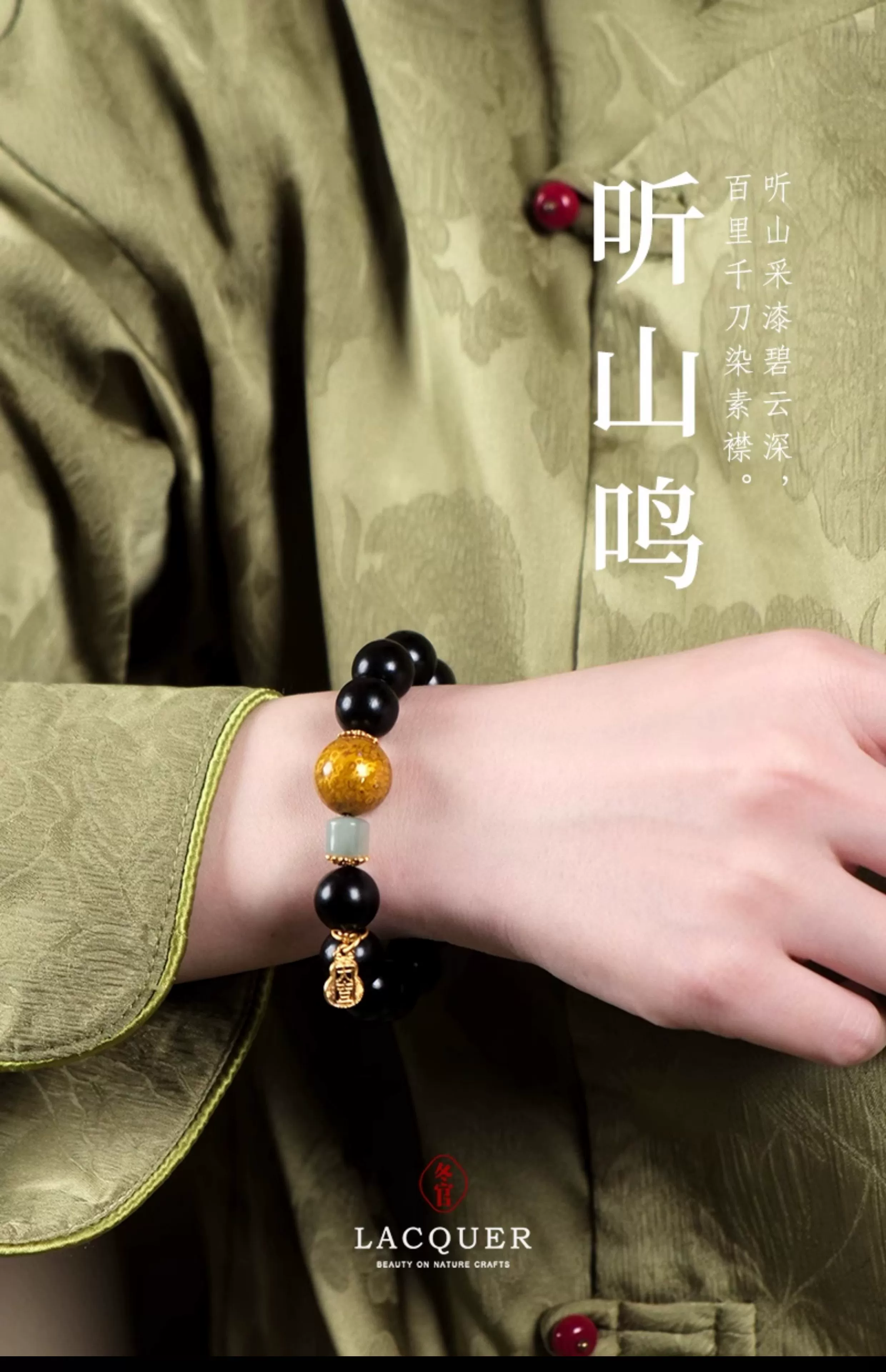 Large lacquer bead bracelet, lacquer jewelry, retro matching of men’s and women’s ethnic style jewelry, listening to mountain language