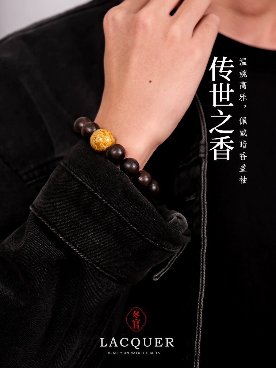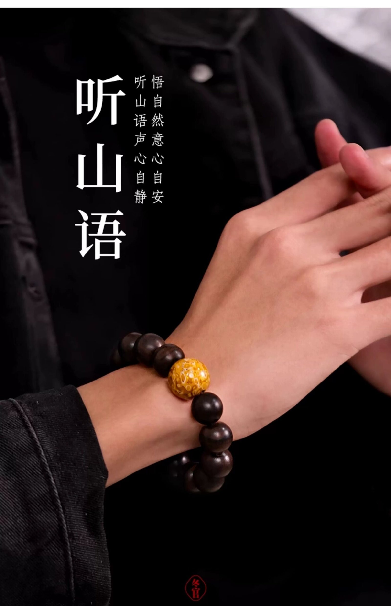 Large lacquer bead bracelet, lacquer jewelry, retro matching of men’s and women’s ethnic style jewelry, listening to mountain language