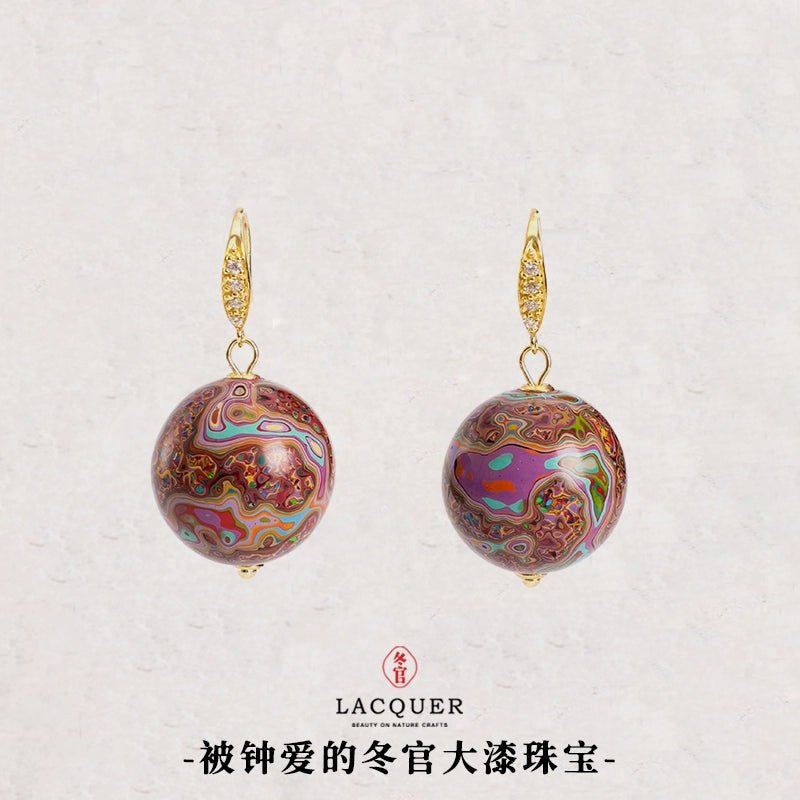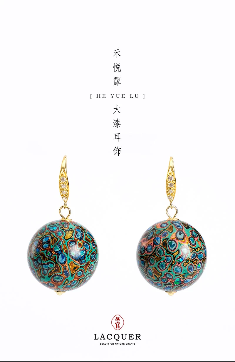 Large lacquer earrings, lacquer jewelry, exquisite light luxury, national style white, national style elegant Heyue sand