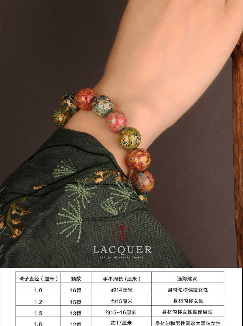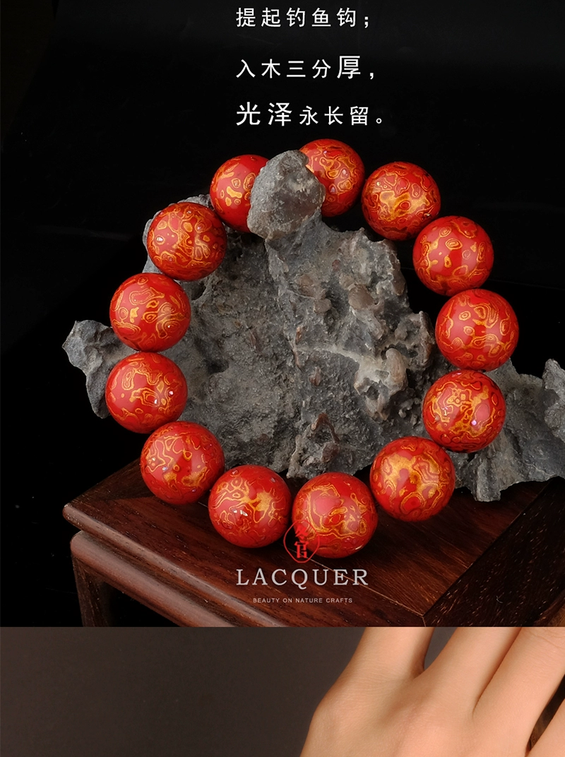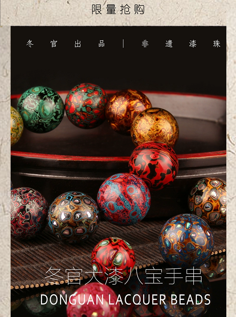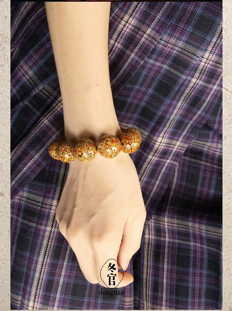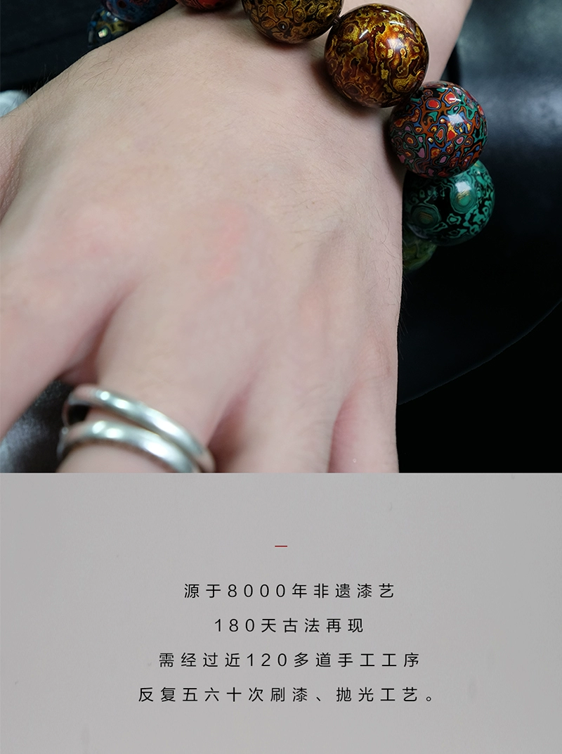 Large lacquer bracelet, couple bead string, traditional retro Duobao intangible cultural heritage, clear and harmonious wind